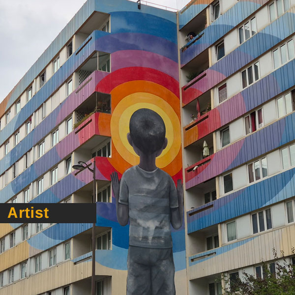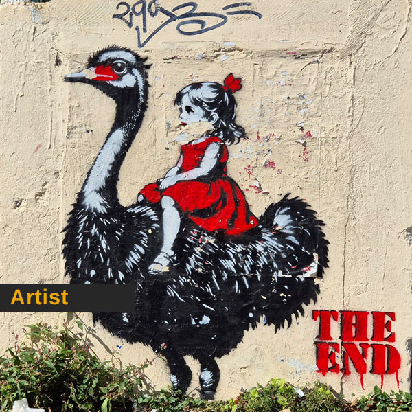 The Pop Suréalist, הוא אמן רחוב ששומר על אנונימיות, הוא נולד בצרפת בשנת 1979 והוא אחד מאמני הקולאז’ והרחוב המסקרנים ביותר הפועלים כיום בזירה האירופית. בשנת 2002, ובמהלך השנים פיתח שפה אמנותית ייחודית – כזו שמחברת בין סוריאליזם, ביקורת חברתית ופילוסופיה על טבע האדם.