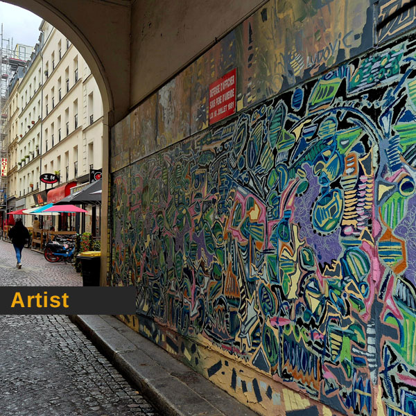Ludovic Djeradi, אמן יליד צרפת (1987), שמביא אל הקיר שילוב חריג של ציור תנועתי, טיפוגרפיה מפורקת וניחוח כמעט ארכיאולוגי של שכבות צבע שמפשיטות ומכסות זו את זו.