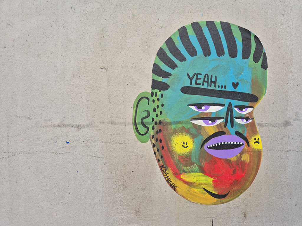 KASHINK היא אחת האמניות הבודדות שמצליחות לשלב בין צבעוניות כמעט ילדותית לבין עומק פוליטי וחברתי. הדמויות שהיא מציירת – לרוב פנים עם ארבע עיניים, שפם עבה, והבעה מסתורית, נעות על הגבול שבין גבר לאישה, אדם וחיה, מציאות ופנטזיה. “אני מציירת דמויות שלא קיימות,” היא אומרת, “כי מבחינתי אמנות הרחוב היא הזדמנות להמציא עולם חדש שבו הכול אפשרי.”